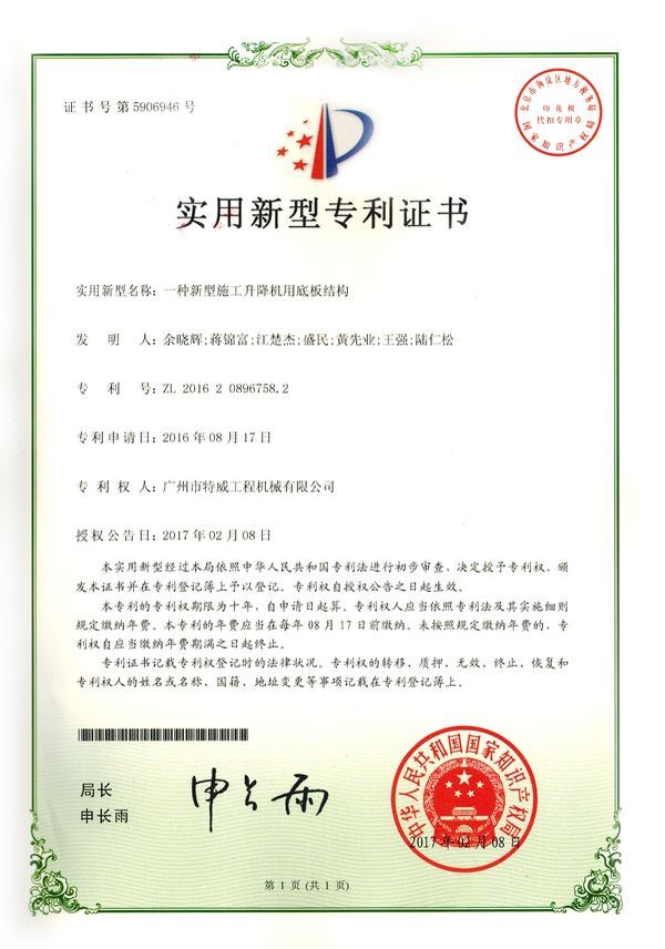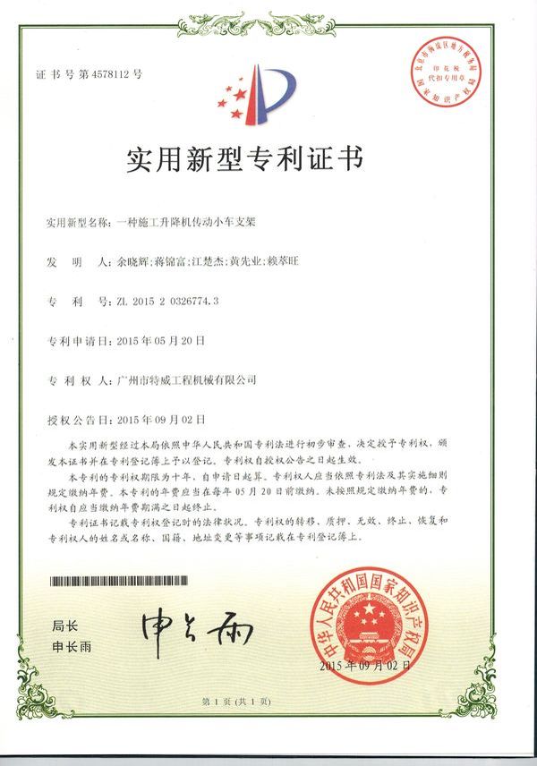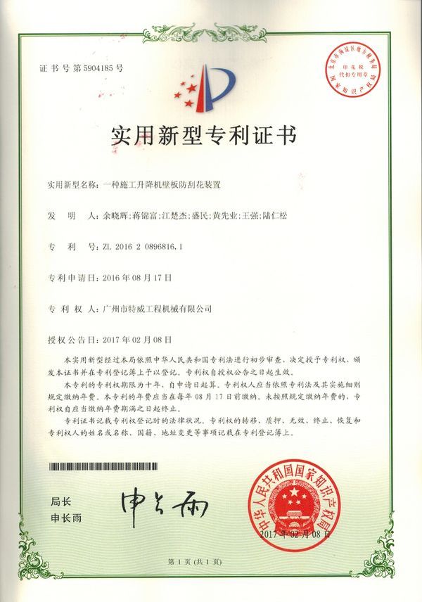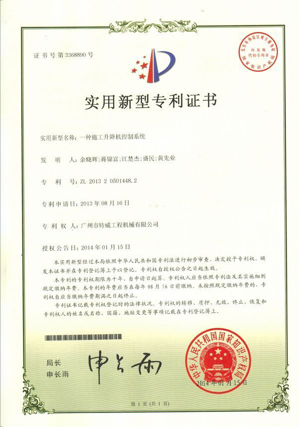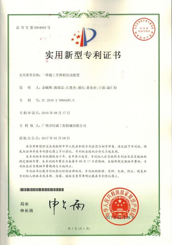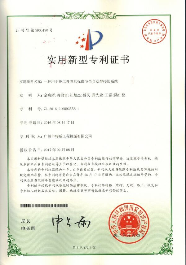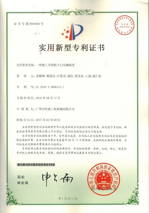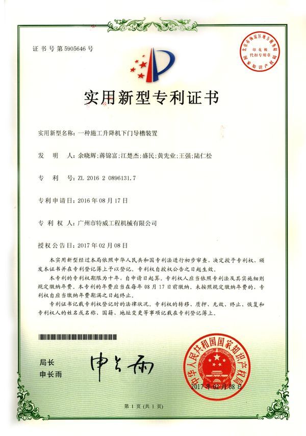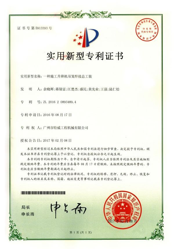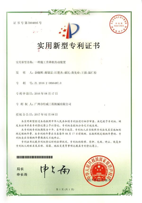 廣州市特威工程機(jī)械有限公司地處廣州市白云區(qū)神山鎮(zhèn),廣清高速神山出口附近,是一家施工升降機(jī)的專業(yè)生產(chǎn)廠家。公司成立于2011年,占地100000多平方米,注冊(cè)資金1060萬元,現(xiàn)有員工300余人其中工程技術(shù)人員33人,高級(jí)技術(shù)人員52人。