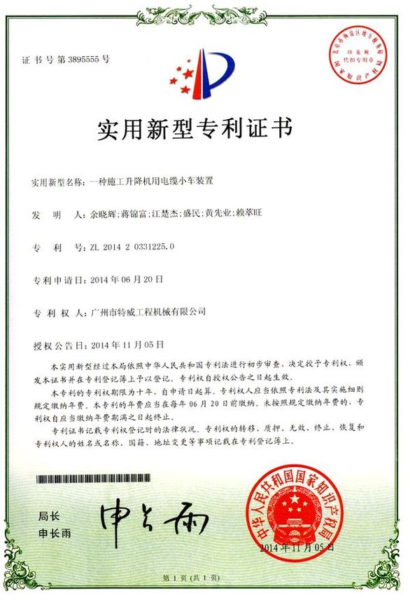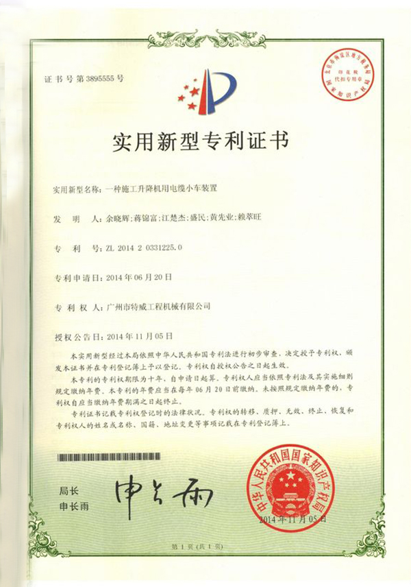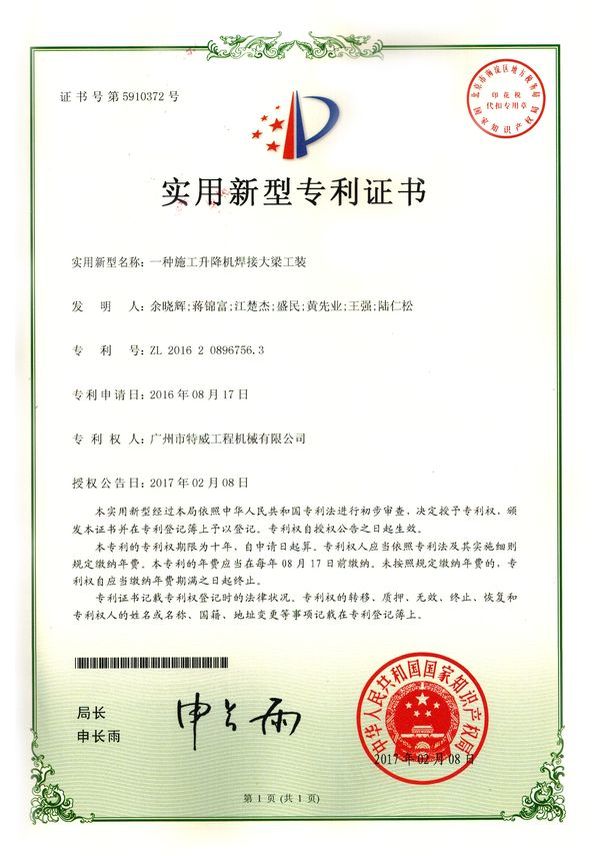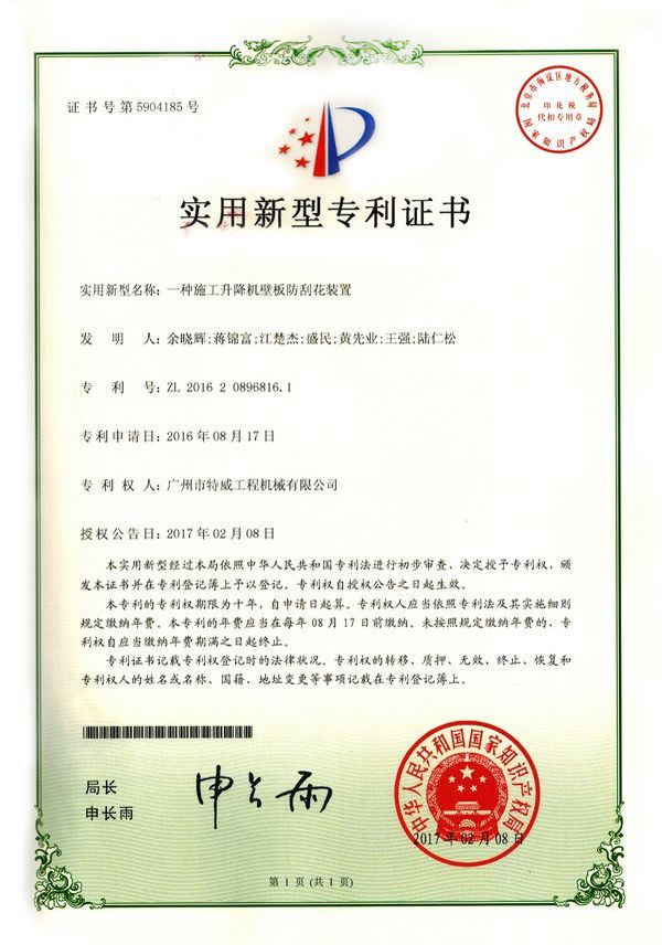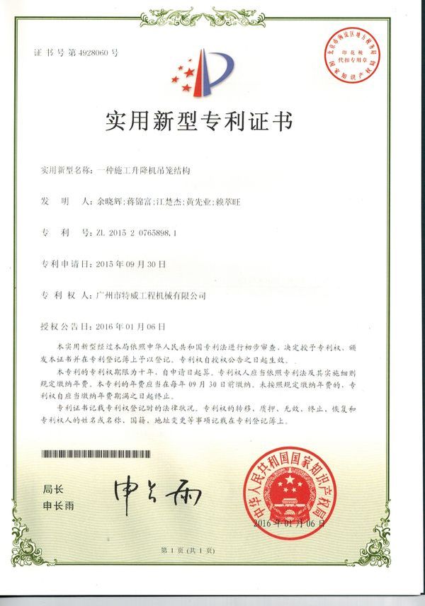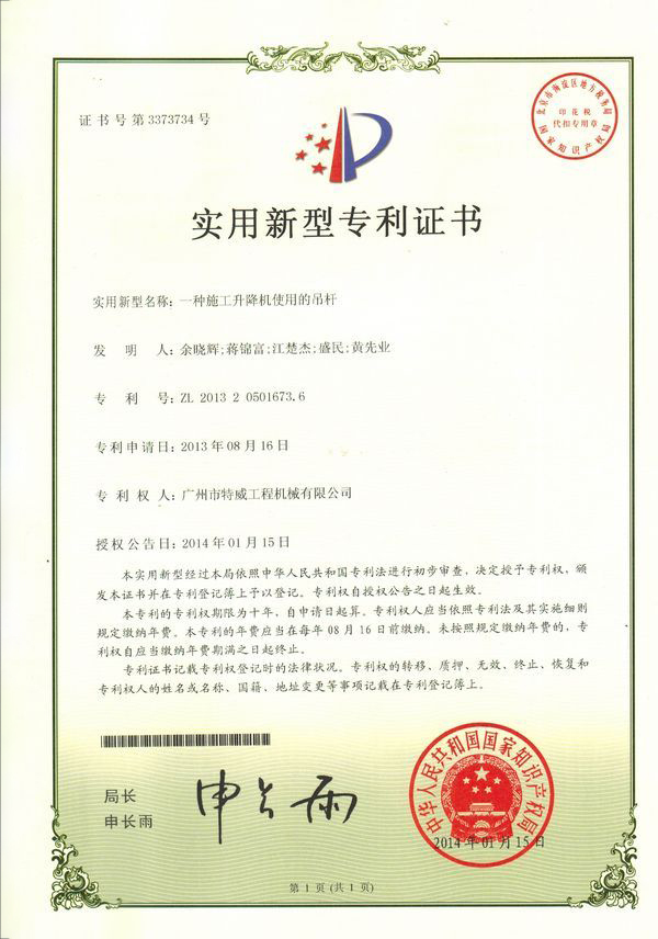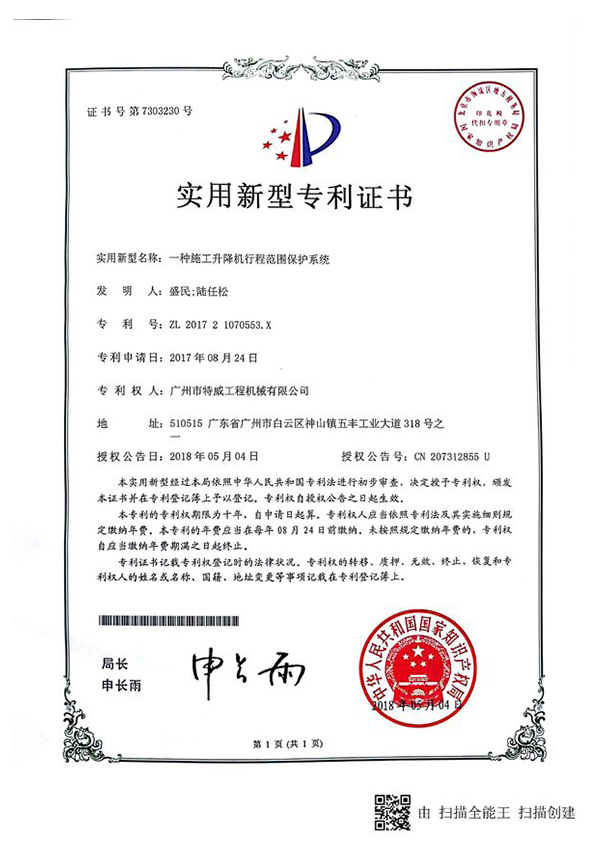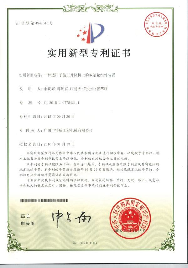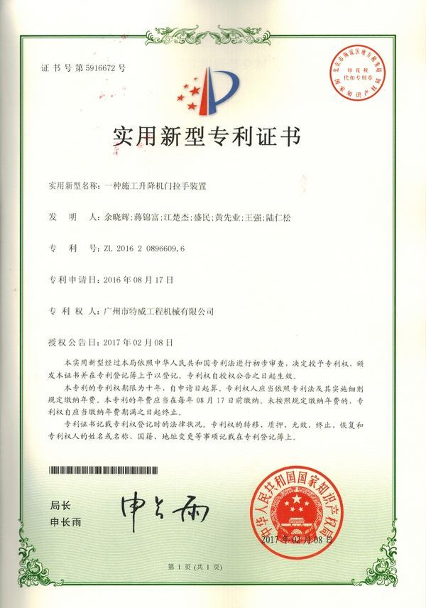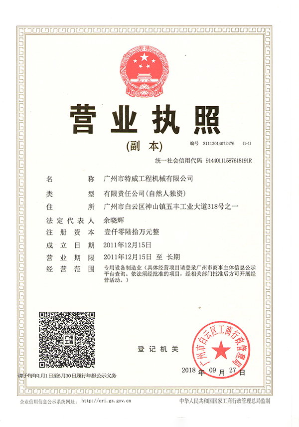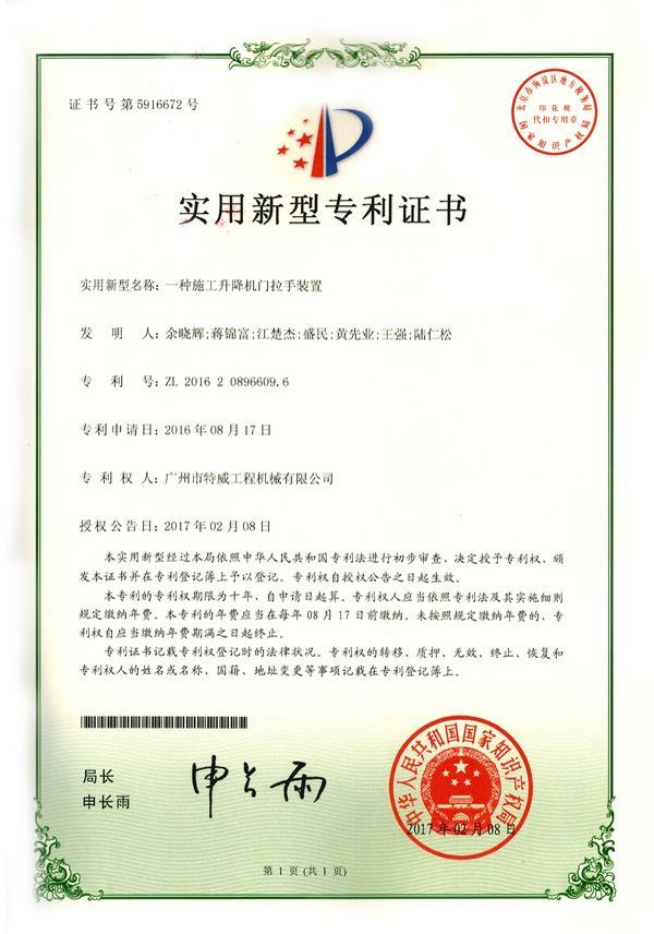 廣州市特威工程機(jī)械有限公司地處廣州市白云區(qū)神山鎮(zhèn),廣清高速神山出口附近,是一家施工升降機(jī)的專業(yè)生產(chǎn)廠家。公司成立于2011年,占地100000多平方米,注冊(cè)資金1060萬元,現(xiàn)有員工300余人其中工程技術(shù)人員33人,高級(jí)技術(shù)人員52人。